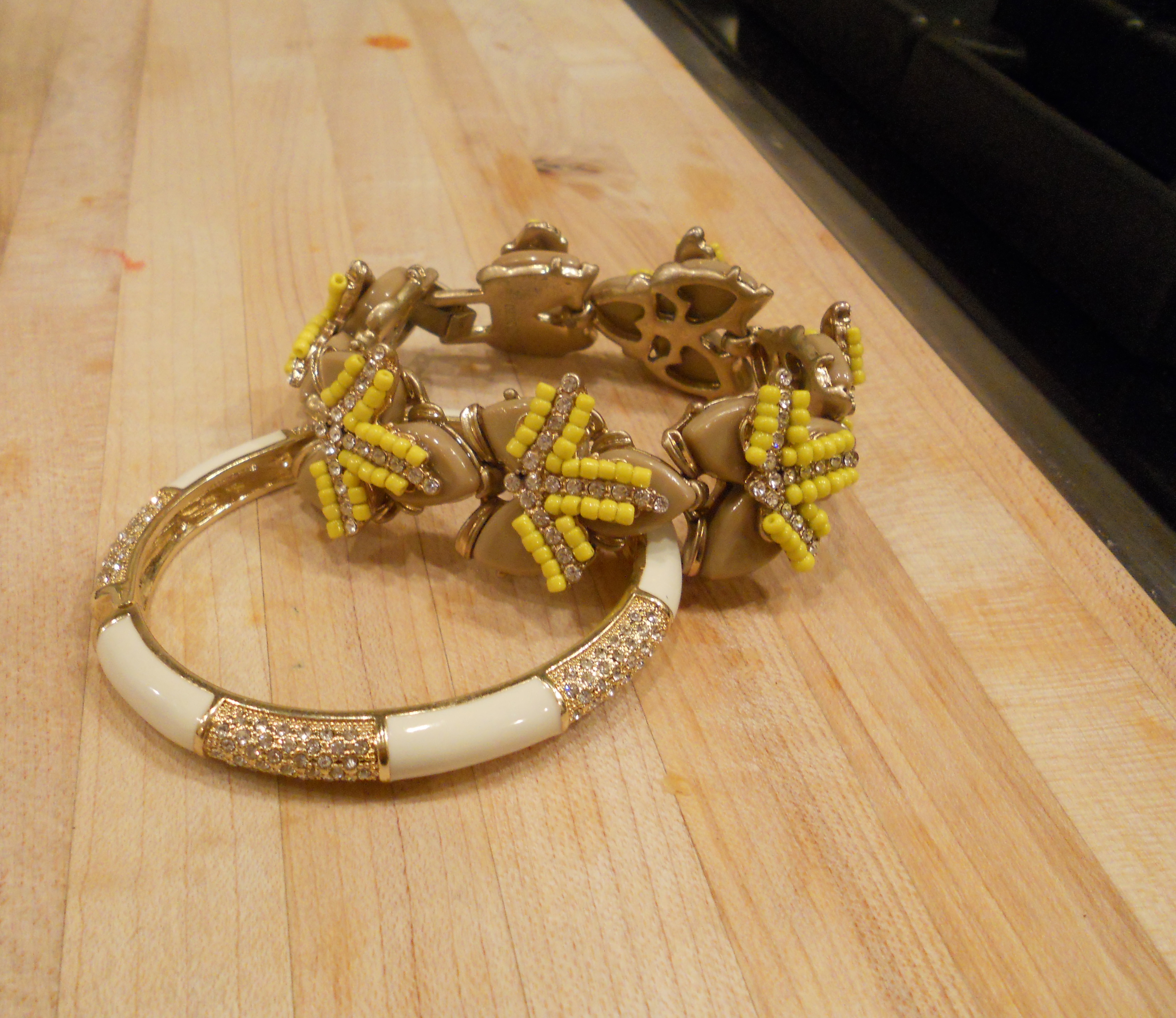 diamond zipper bracelet: j.crew // glitter braided bracelet: crewcuts // studded bracelet: boutique from my town