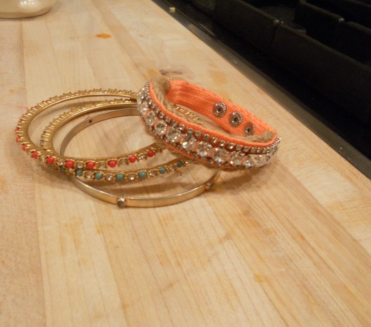 coral and turquoise bangles: j.crew // gold bangle // boutique from my town // neon diamond rope bracelet: juicy couture